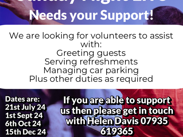 Continue readingWe are seeking individuals to provide support for the Sunday Night Live events, either as a one-time volunteer or on