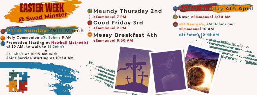 - 29th March – Palm Sunday: Minster Service @ St John’s 10:30am