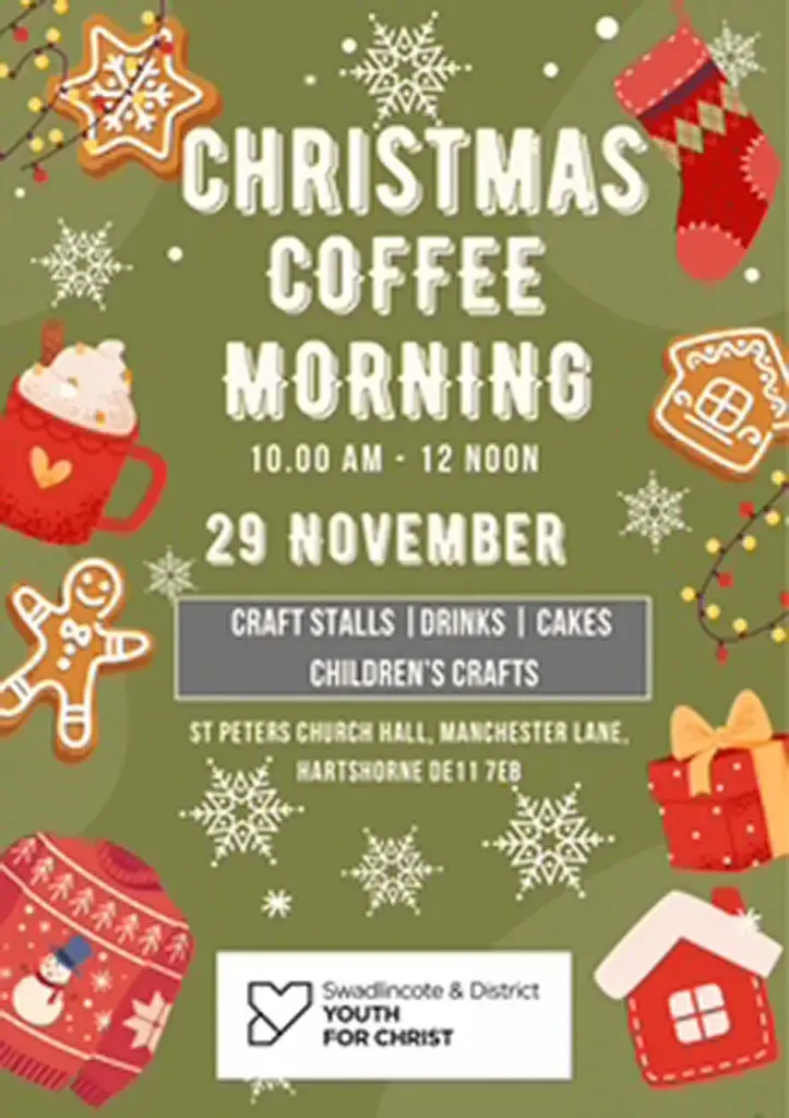 On 29th November SDYFC are holding a coffee morning 10:00am – 12:00pm at St Peter’s Church Hall, Hartshorne.