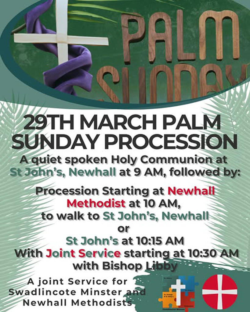 - 9:00am @ St John’s Newhall. Then a walk from Newhall Methodist to St John’s at 10:00am
